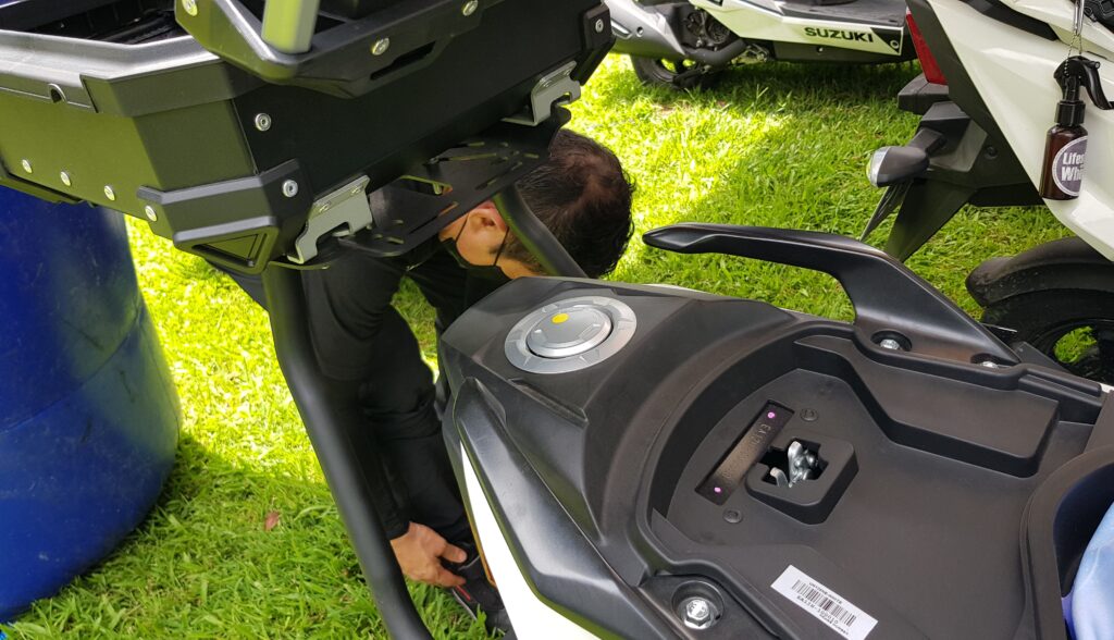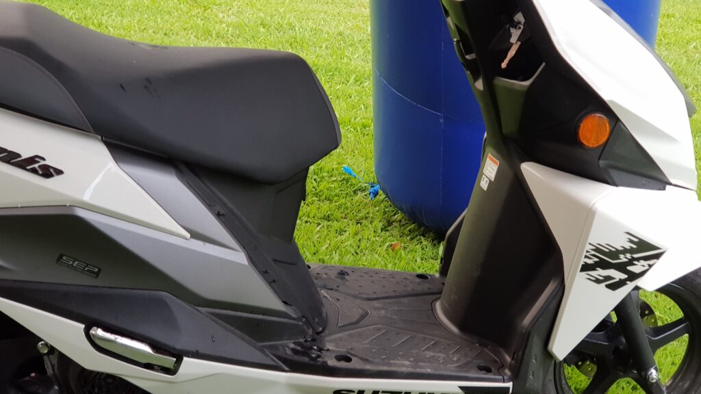 Probably the most practical feature I like best is the fuel filler lid located at the rear tail. It is not under the seat or at the center of the floorboard like in normal small scooters. This makes refuelling convenient as you do not have to get off the seat or remove your cargo from the floor board to access the fuel filler cap. Suzuki swiftly downplayed the concern of some critics that this will prevent you from mounting a top box by having one of the Avenis lead scooter equipped with the top box as proof that there is no real issue.