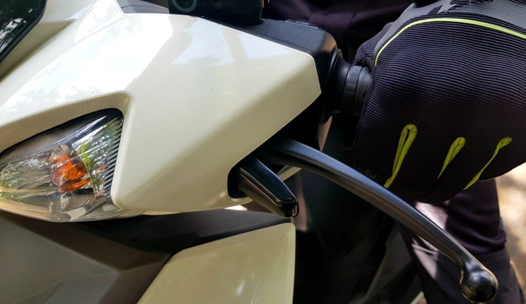 It has a Combined Brake System that engages both front and rear brakes at the same time for maximum braking. I also like the Brake Lock system that you can engage by a separate lever so that you can park your scooter on inclines. Wow! This feature is similar to the Parking Brake found on big maxi scooters!
